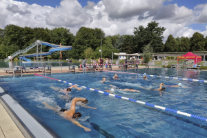 Eine besondere Überraschung hielt die DLRG Bargteheide e.V. für eine Schwimmerin aus dem 14-Uhr-Start bereit: Im 14. Veranstaltungsjahr wurde die 1.000 Knotenschwimmerin begrüßt. Die Vorsitzenden Martin Knaffel und Jessica Poetsch überreichten ihr einen von der Haspa gesponserten Präsentkorb.